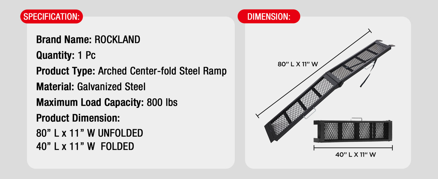 - HIGH LOAD CAPACITY: Easily load heavy equipment with the Rockland Steel Mesh Loading Ramp. It can support up to 800 lbs with one ramp and 1600 lb with two ramps, making it perfect for tough jobs.
