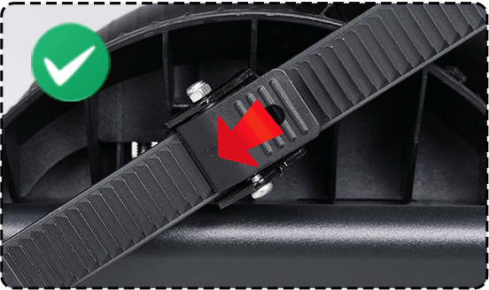 Make sure the strap is securely looped through the designated slot andtightened as shown in the green check illustration.