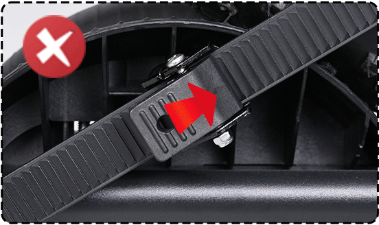 Do not attach the strap incorrectly, as shown in the red cross illustration.Incorrect installation may result in instability during use.