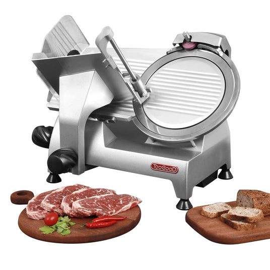 SHARP AND PRECISION SLICING: Equipped with a sharp, 8'' Italian carbon stainless steel blade, the slicer offers precise cuts every time. You can adjust the thickness to get slices from super thin to thick. It's great for slicing meats, cheeses, and vegetables.