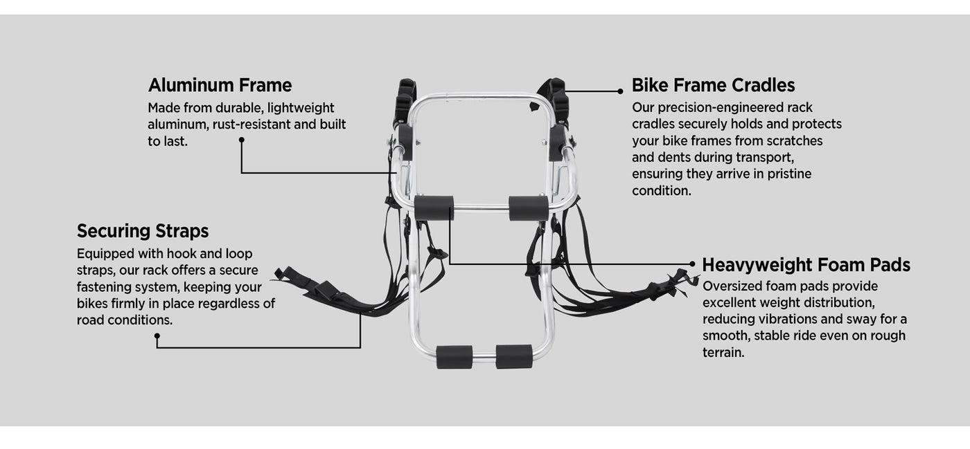 - VEHICLE PROTECTION DESIGN: Includes protective pads to prevent scratches and damage to your vehicle's paint. The design ensures bike pedals and tires do not touch the vehicle, safeguarding both the car and bikes from harm.