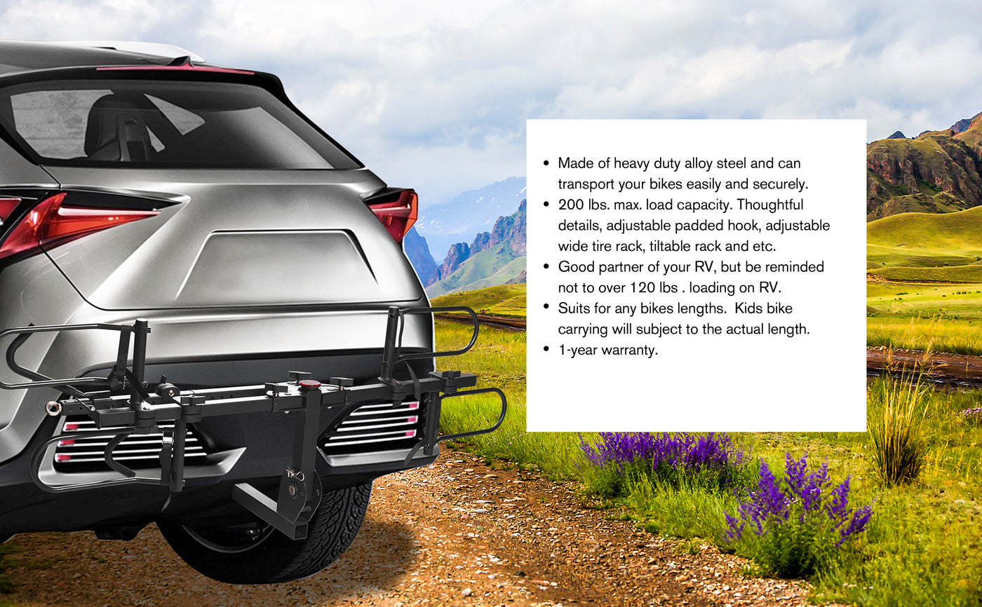 - 1-YEAR WARRANTY: If anything ever goes wrong with your hitch-mounted bike rack, please contact our 24H Service Team.