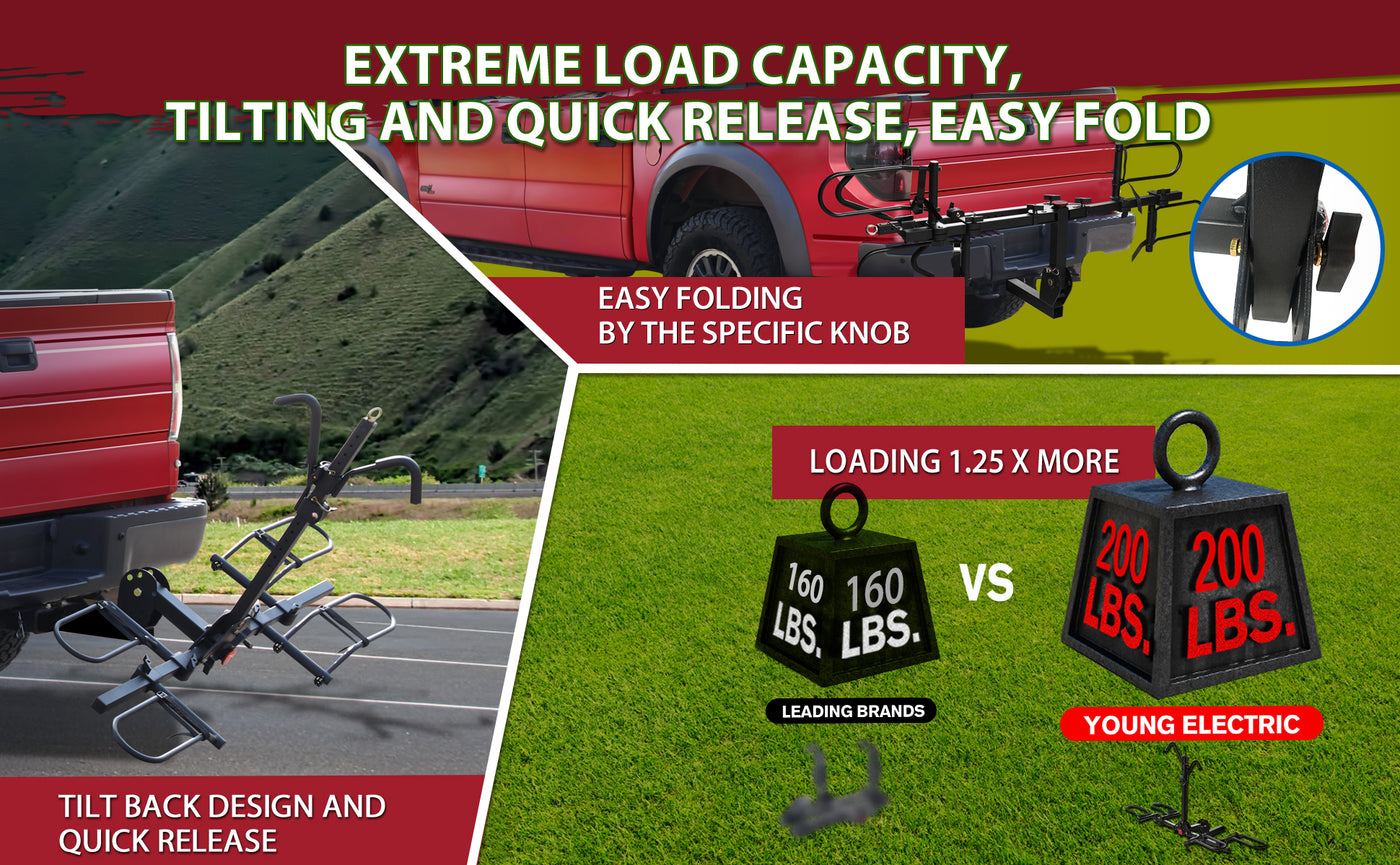 - FOLDABLE & TILT-BACK DESIGN: Users can fold up this rack to save space when not in use, and it is convenient for garage parking. The quick-release tilting-down feature allows easy access to the trunk without detaching the hitch rack.