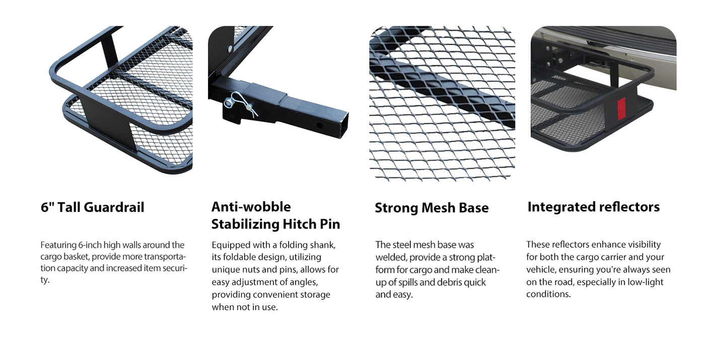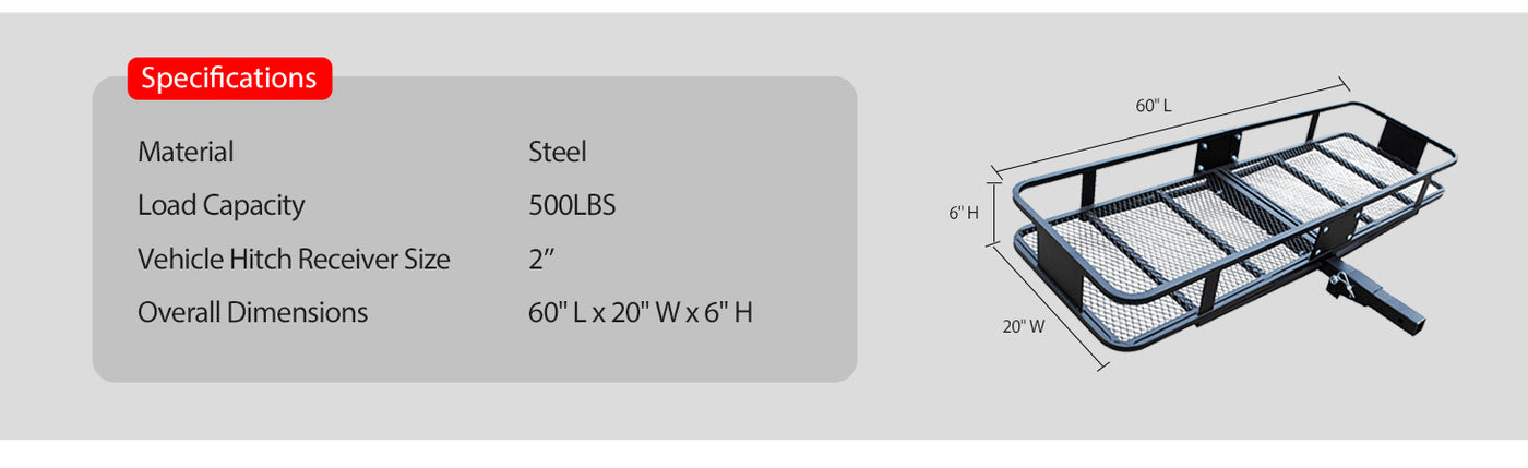 500 LB Foldable Hitch Cargo Carrier, Heavy Duty Luggage Basket, 60'' x 20'', Fits 2'' Receiver