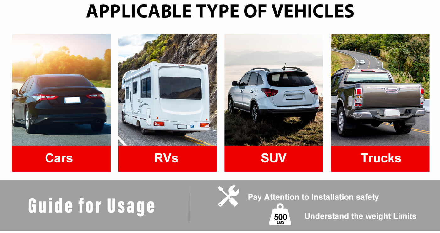 • SAFE AND SECURE TRANSPORT: Our carrier is designed with safety in mind. Use the recommended tie-downs, bungee cords, or cargo webbing to secure your load and prevent any shifting during transport, ensuring your cargo stays put.