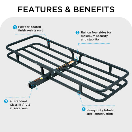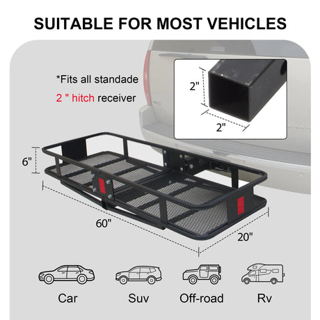 $189.99 USD$209.99Unit price /Unavailable 500 LB Foldable Hitch Cargo Carrier, Heavy Duty Luggage Basket, 60'' x 20'', Fits 2'' Receiver