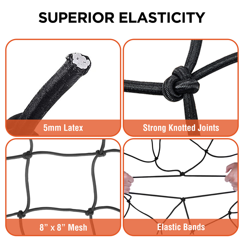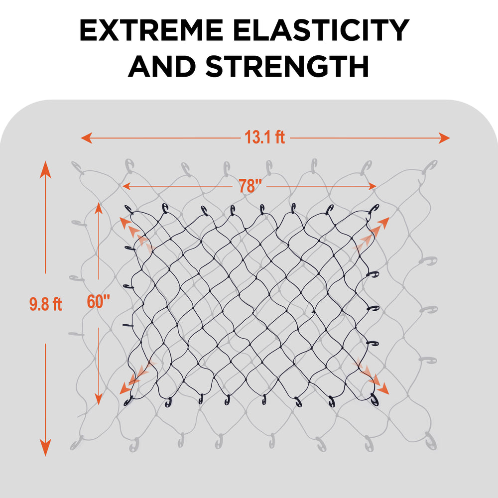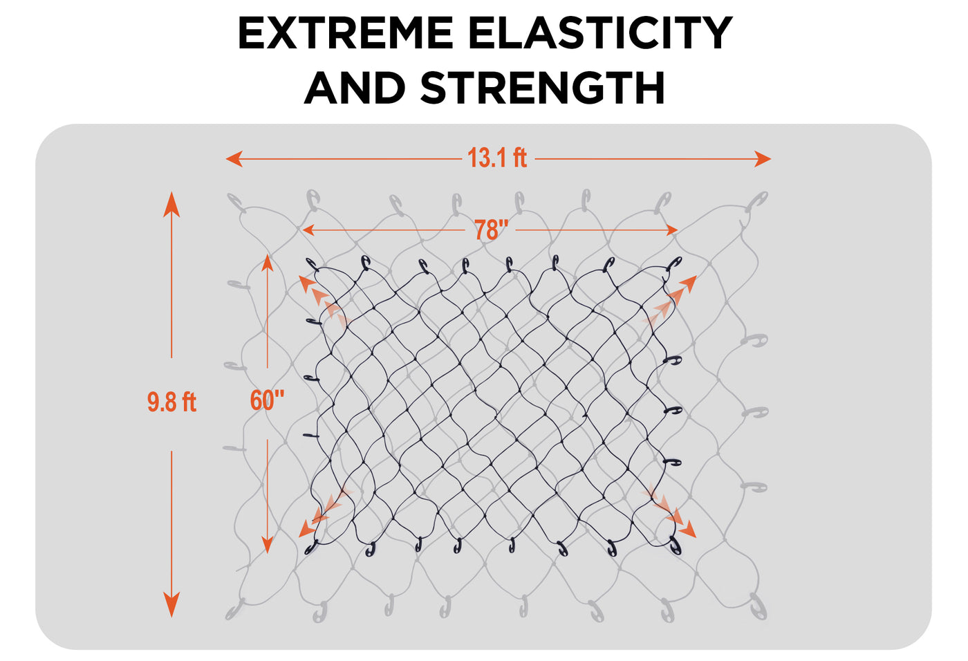 - OPTIMAL STRETCHING LIMITS: To maintain the integrity of the net and ensure maximum performance, the cord should not be stretched beyond 150% of its original length. This feature provides the net’s durability and effectiveness in securing your cargo.