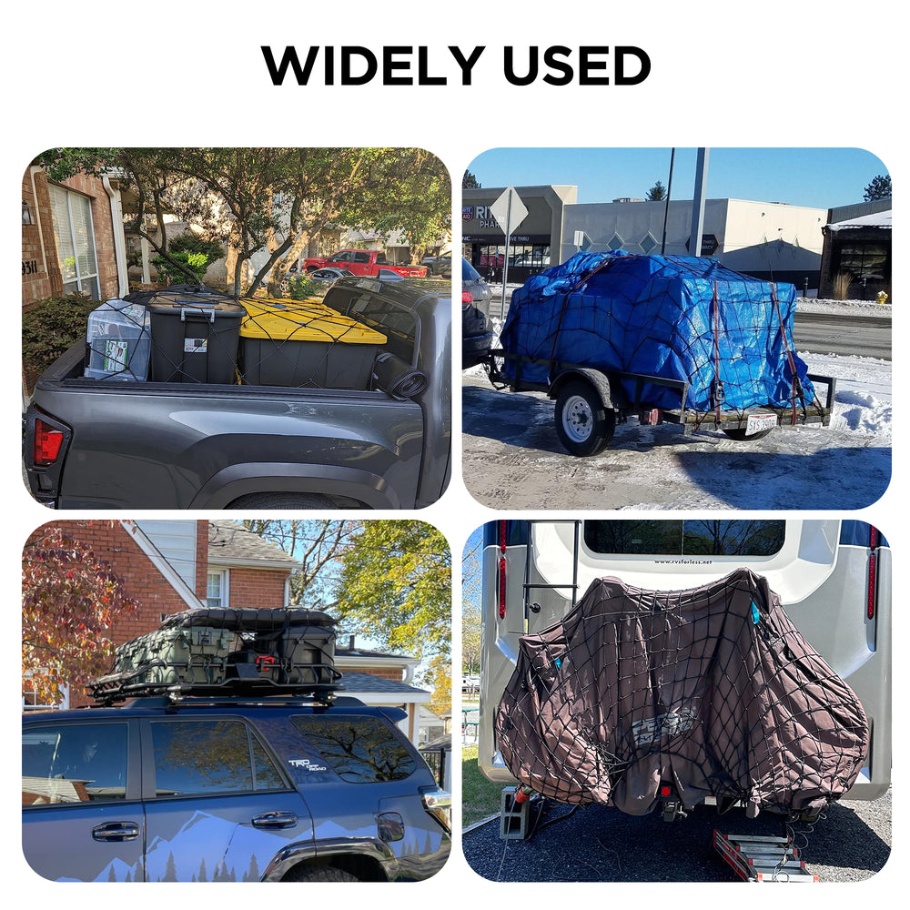 - EASY TO USE: Lay the net over your cargo, attach the hooks to anchor points at evenly spaced intervals, and you’re all set. The straightforward design makes it easy for anyone to use, saving you time and effort.