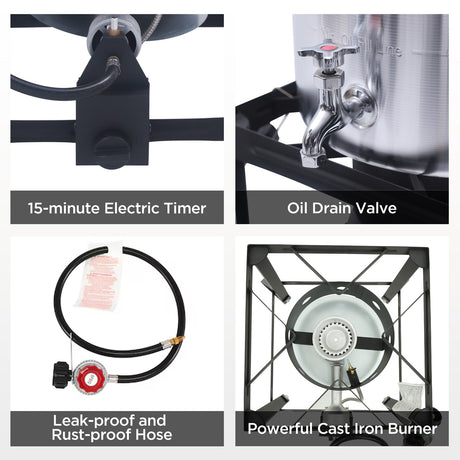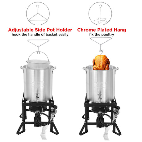 36 Qt. Turkey Deep Fryer Pot, Outdoor Turkey Boiler With Drain Spout & Propane Burner