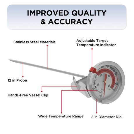 12" Fry Thermometer,Stainless Steel Stem Meat Cooking Thermometer