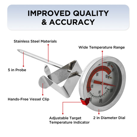 5” Fry Thermometer, Stainless Steel Handle Meat Cooking Thermometer