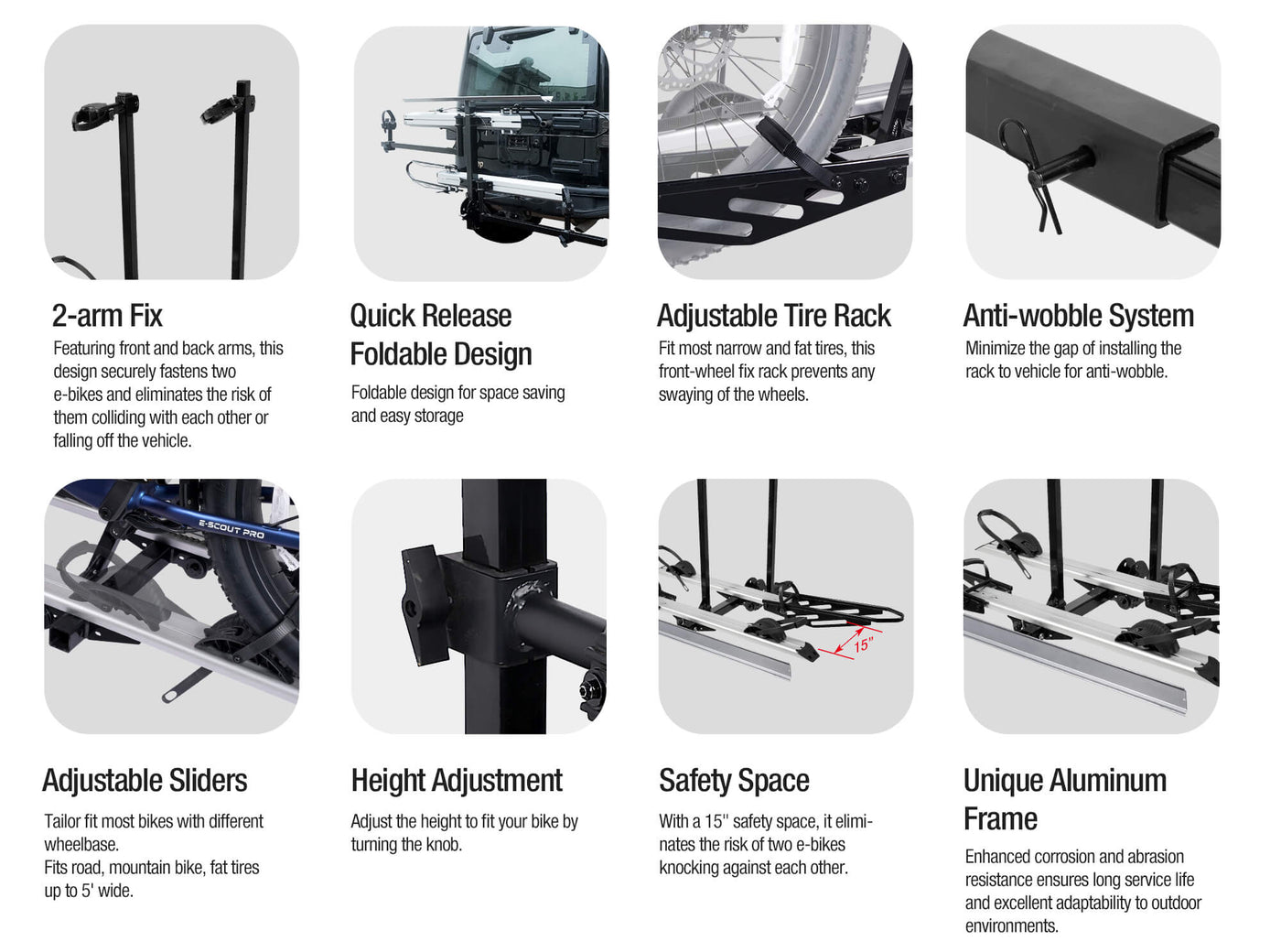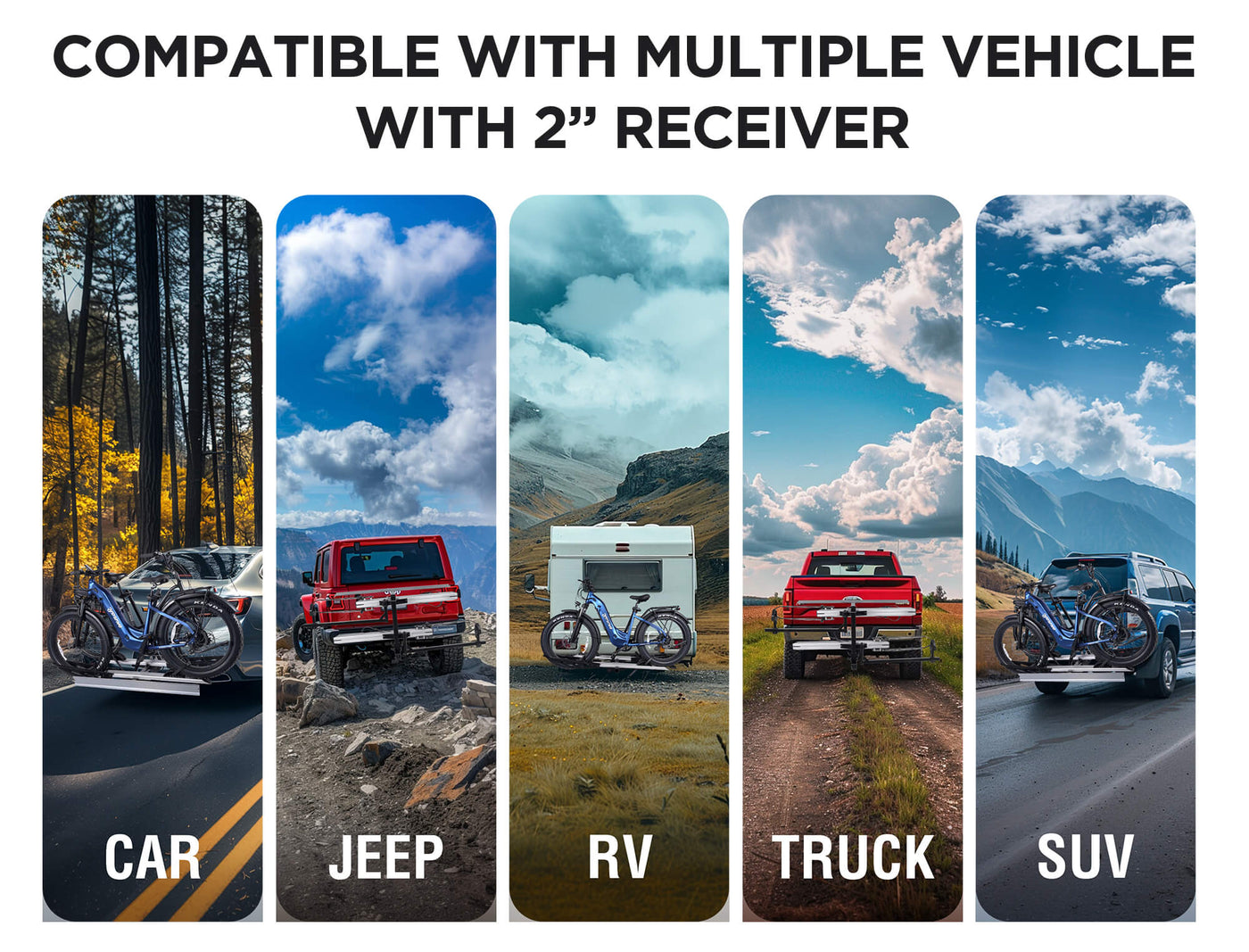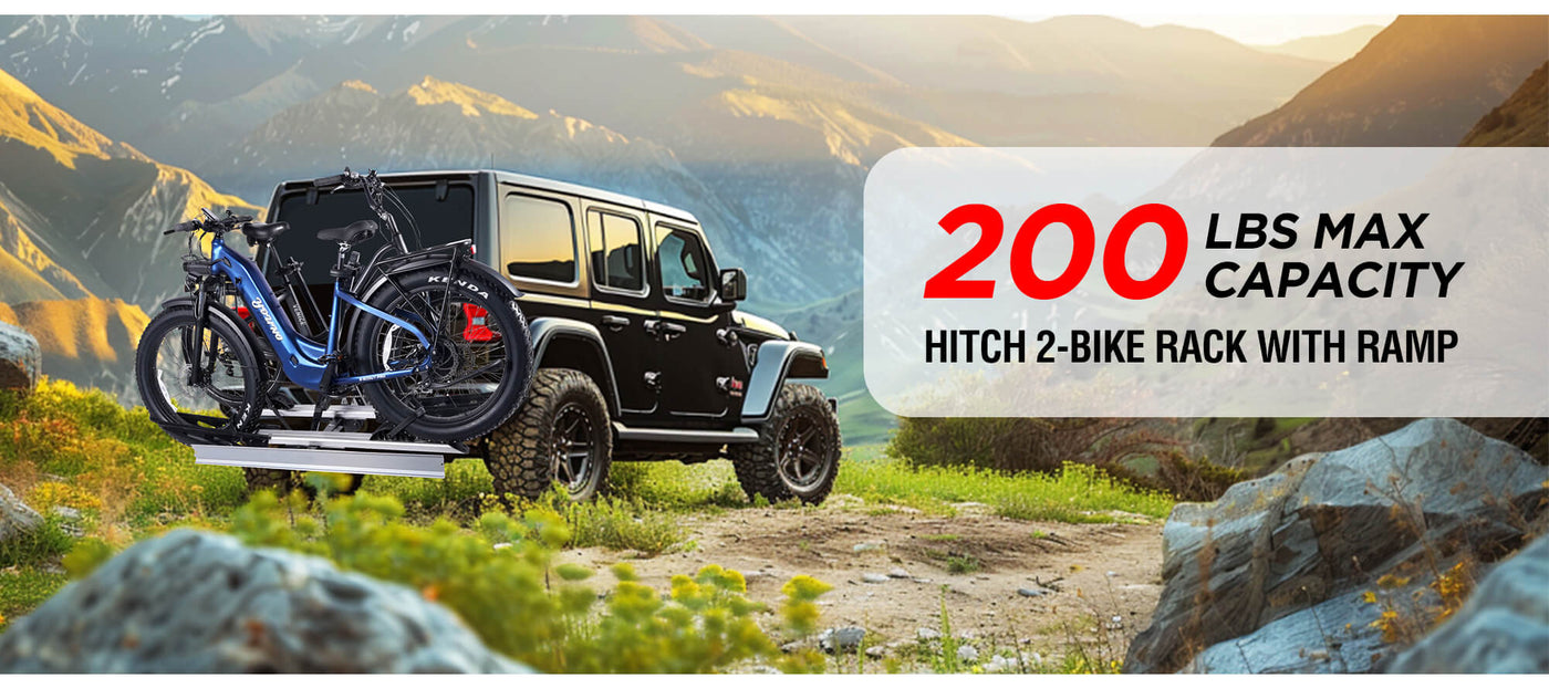 2-Bike Hitch E-Bike Rack with Ramp, Foldable