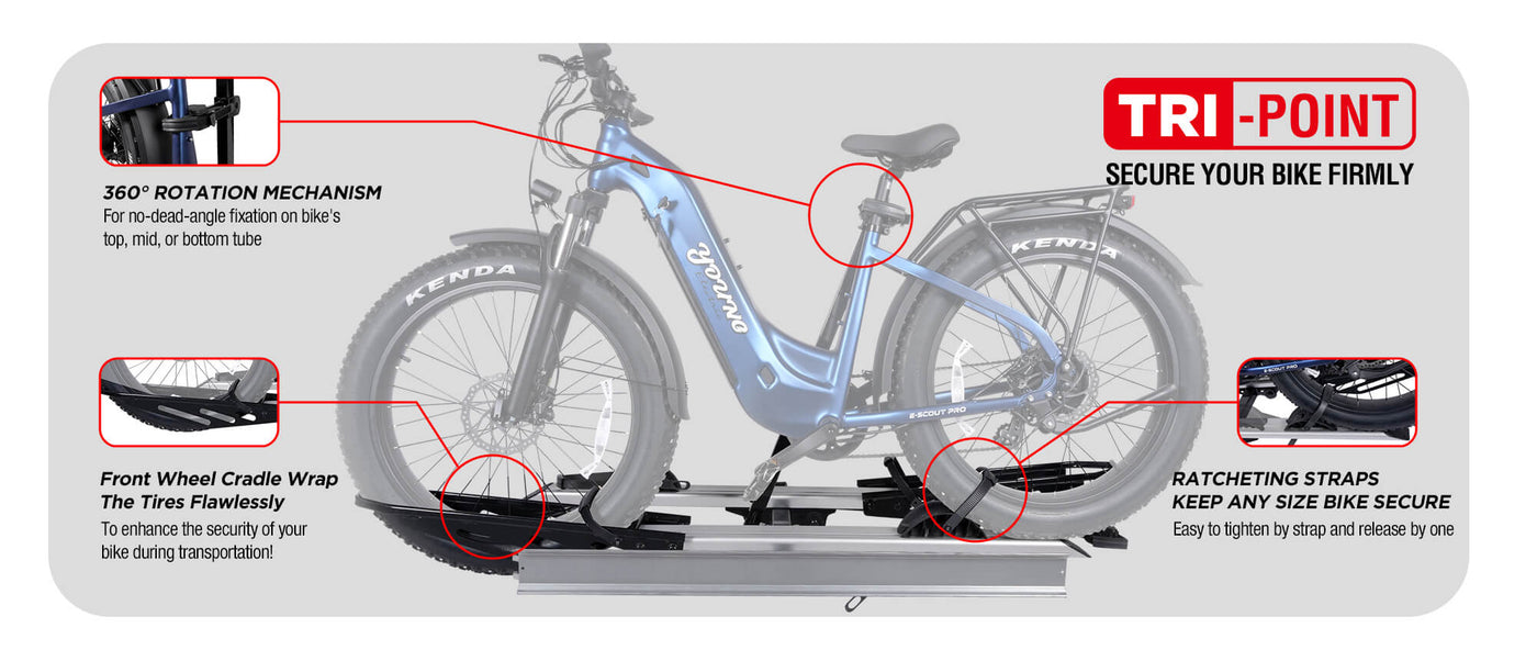CONVENIENT RAMP: Built-in ramp for easy loading and unloading, reducing the need for heavy lifting and making bike transport hassle-free.