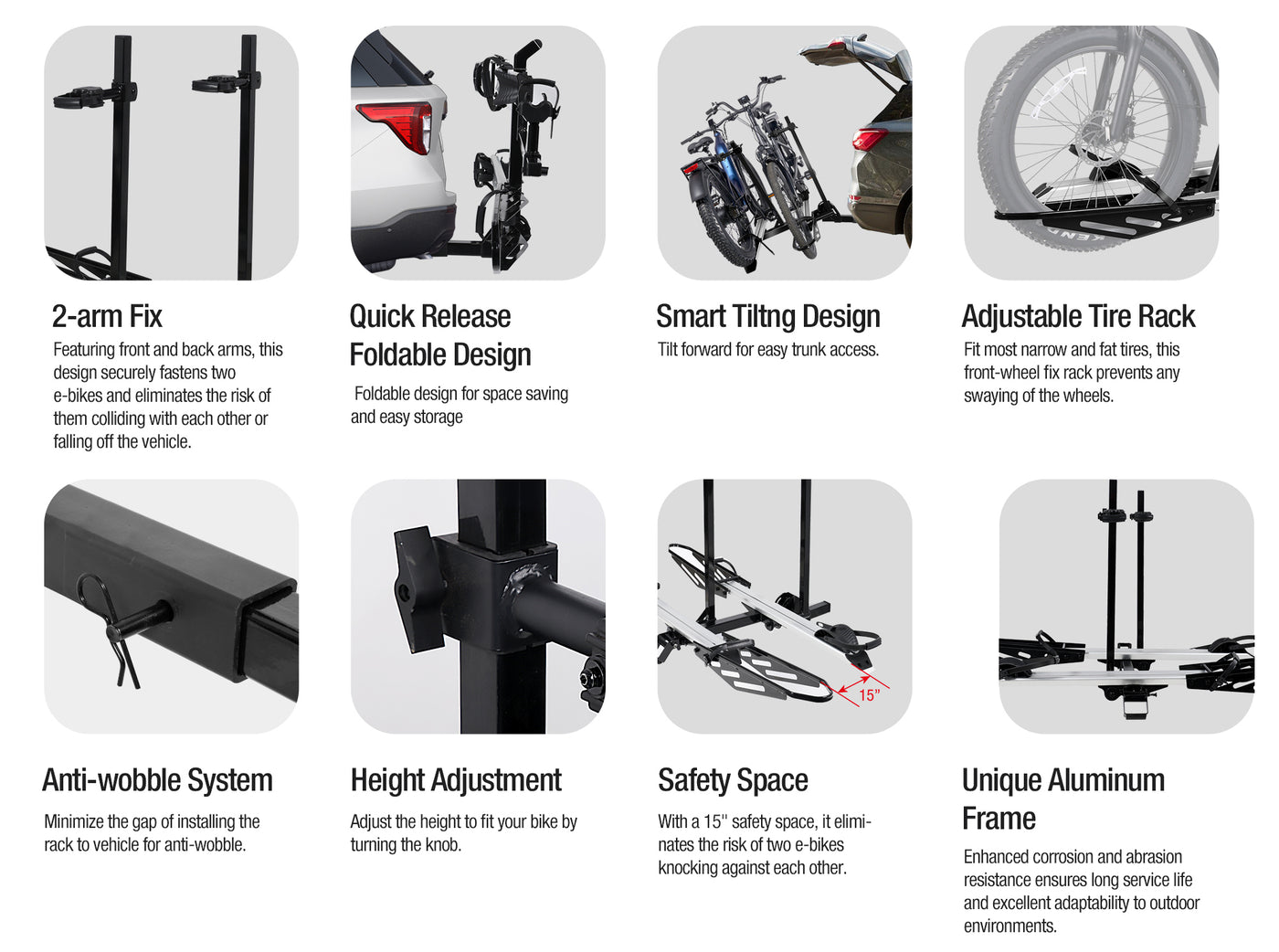 2-Bike Hitch E-Bike Rack, Easy Fold and Tilt, Silver Color