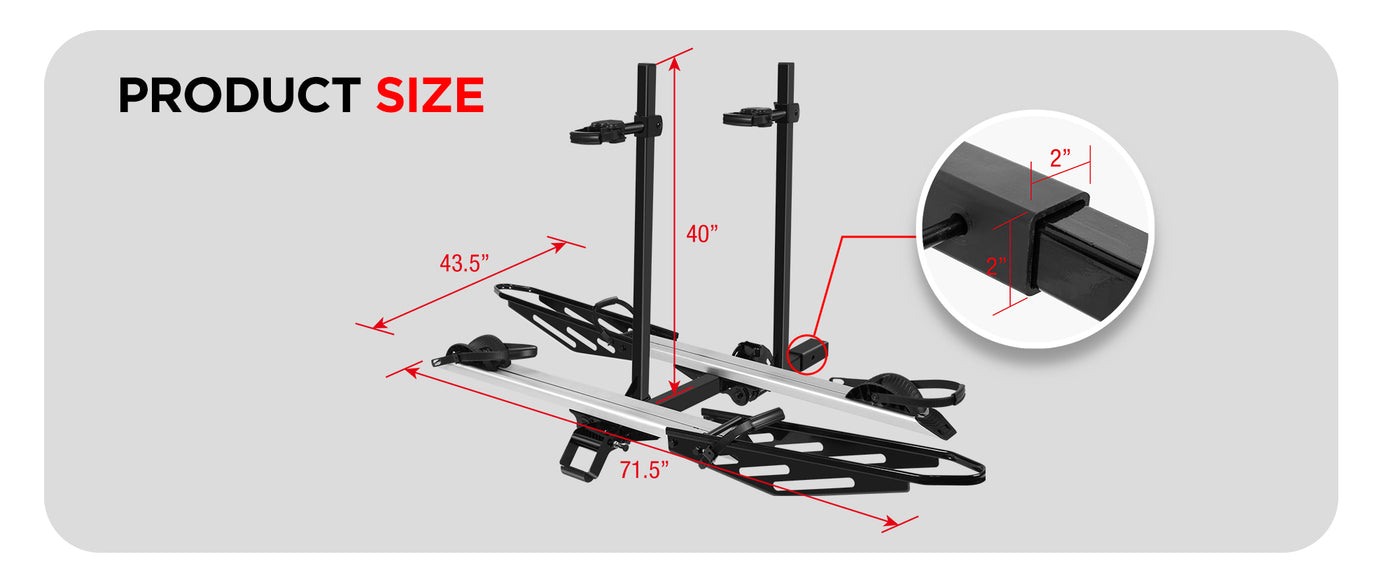 200 LBS Capacity, Up to 50‘’ Wheelbase and 5'' Tire Width, 2'' Hitch