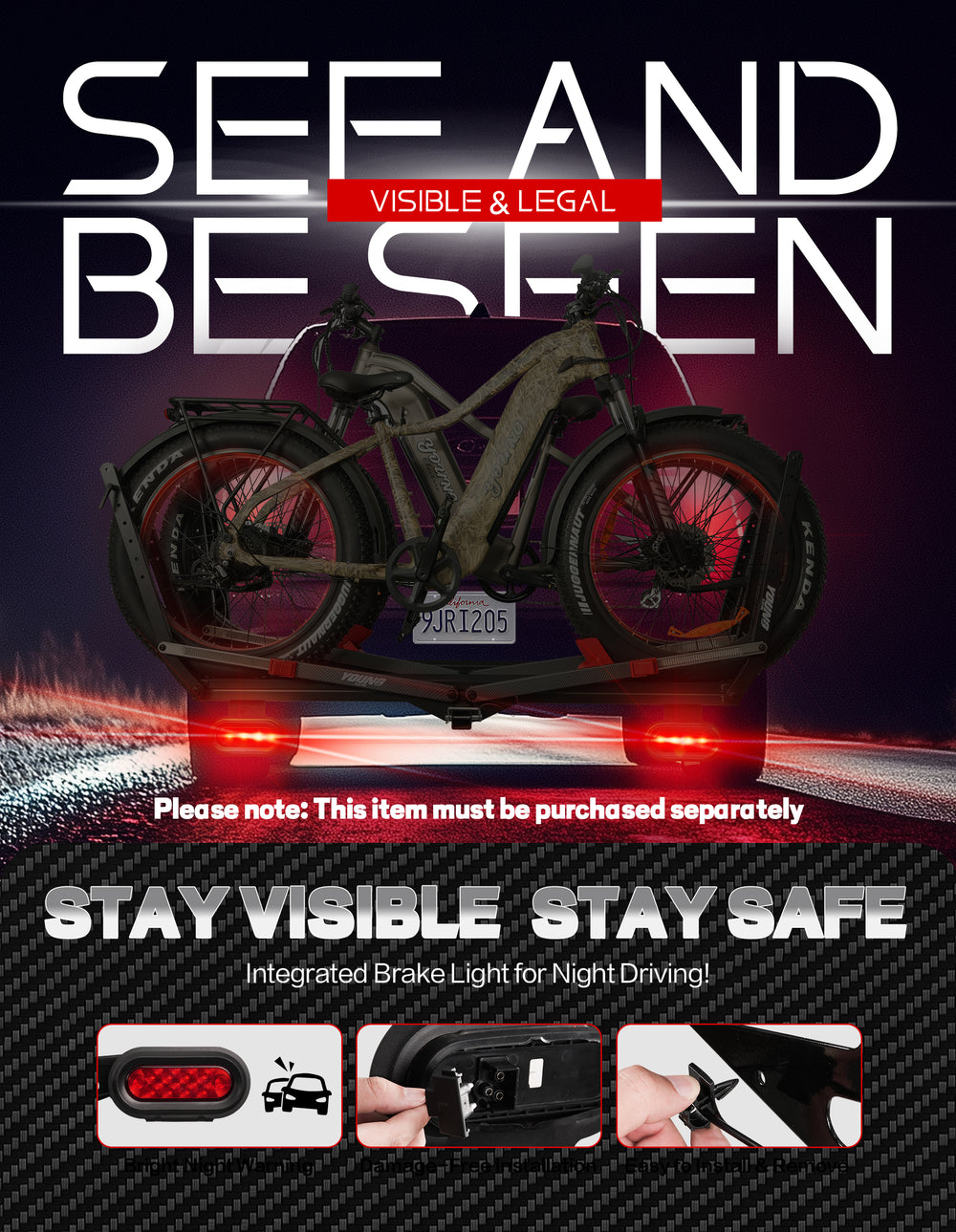 • 【User-Friendly Features】 Includes integrated loading ramp for easy bike mounting (supports heavy e-bikes) and 90° foldable design that clears your trunk space. Optional brake light compatibility (sold separately) enhances night visibility. Quick-install hitch system gets you road-ready in minutes.
