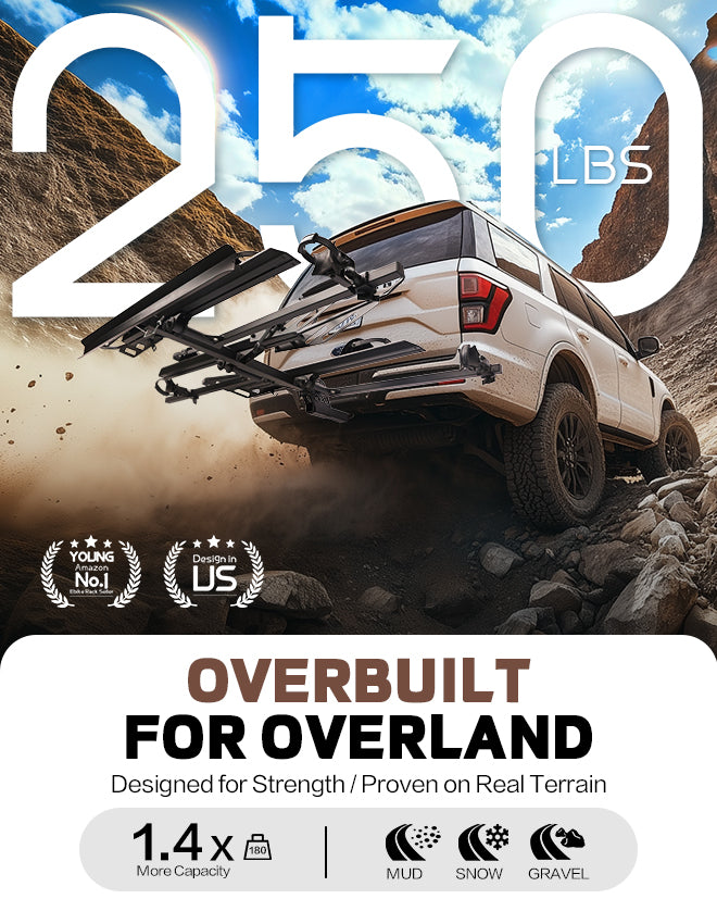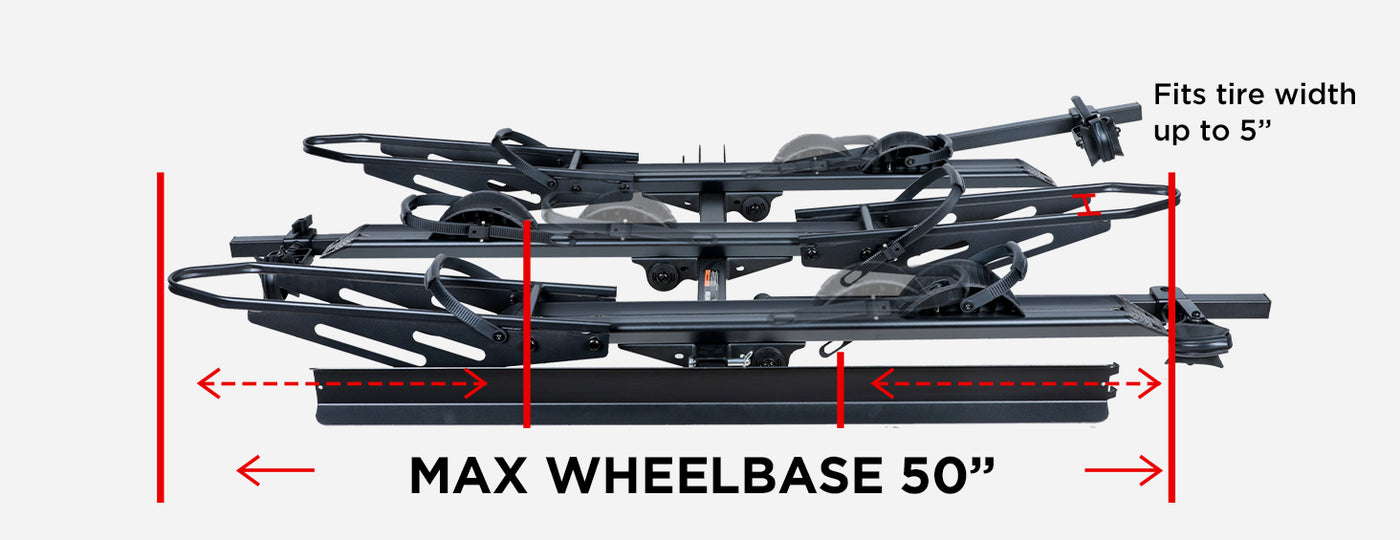 250 LBS Capacity, Up to 50‘’ Wheelbase and 5'' Tire Width, 2'' Hitch
