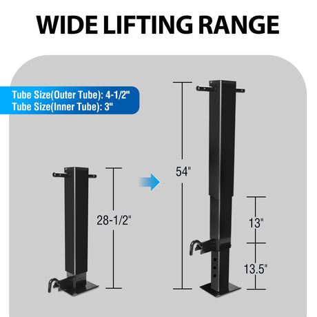 12000 LB Weld-On Side Pin Square Jack, Sidewind Dropleg Trailer Jack, 25.5 Inch Travel
