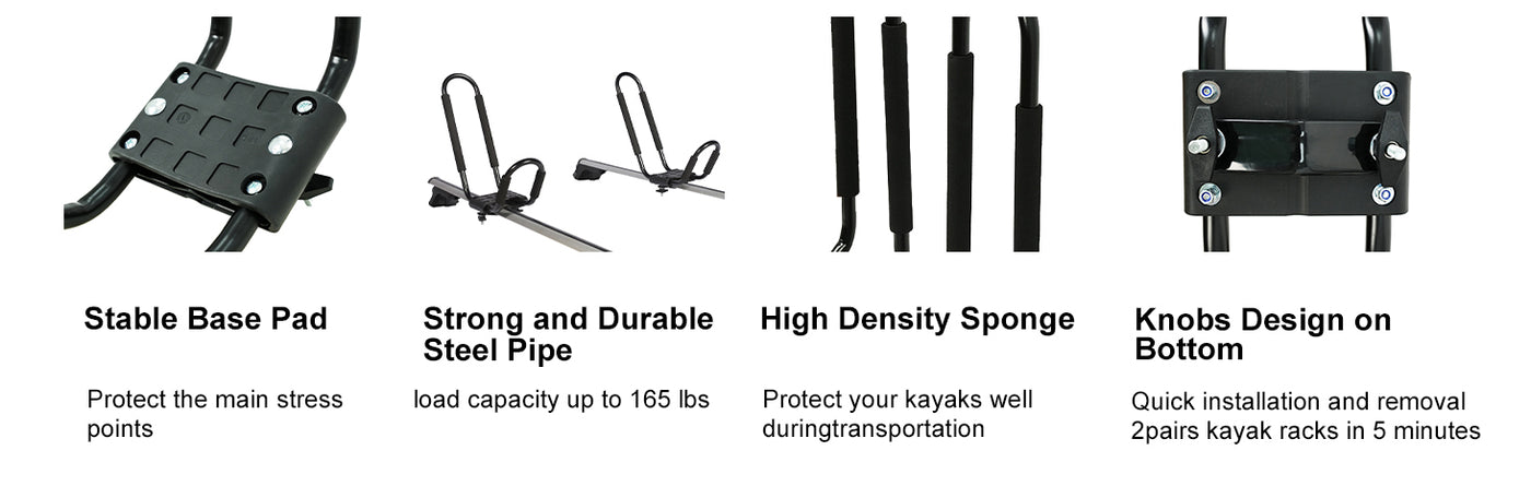 - DURABLE CONSTRUCTION: Built from high-quality materials, this kayak carrier guarantees long-lasting durability. Its sturdy design can support kayaks weighing up to 165 lbs, providing reliable performance on every trip.