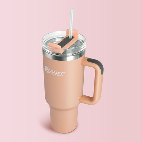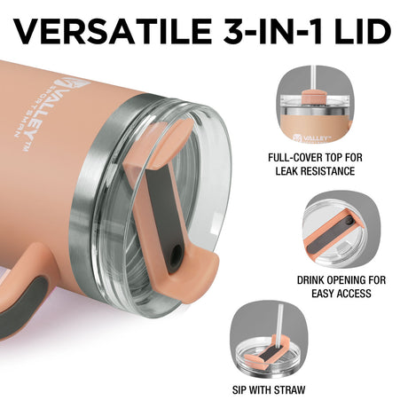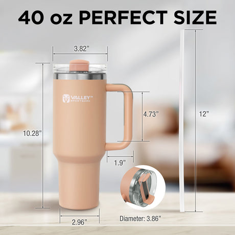 40oz Tumbler with Handle and Straw, Stainless Steel Leakproof Insulated Mug, Beige Rose