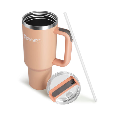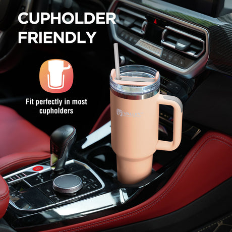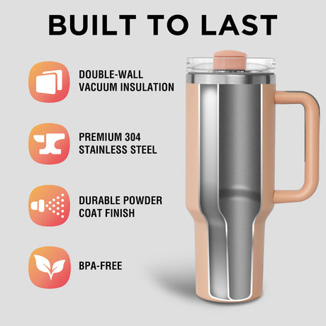 40oz Tumbler with Handle and Straw, Stainless Steel Leakproof Insulated Mug, Sand Beige