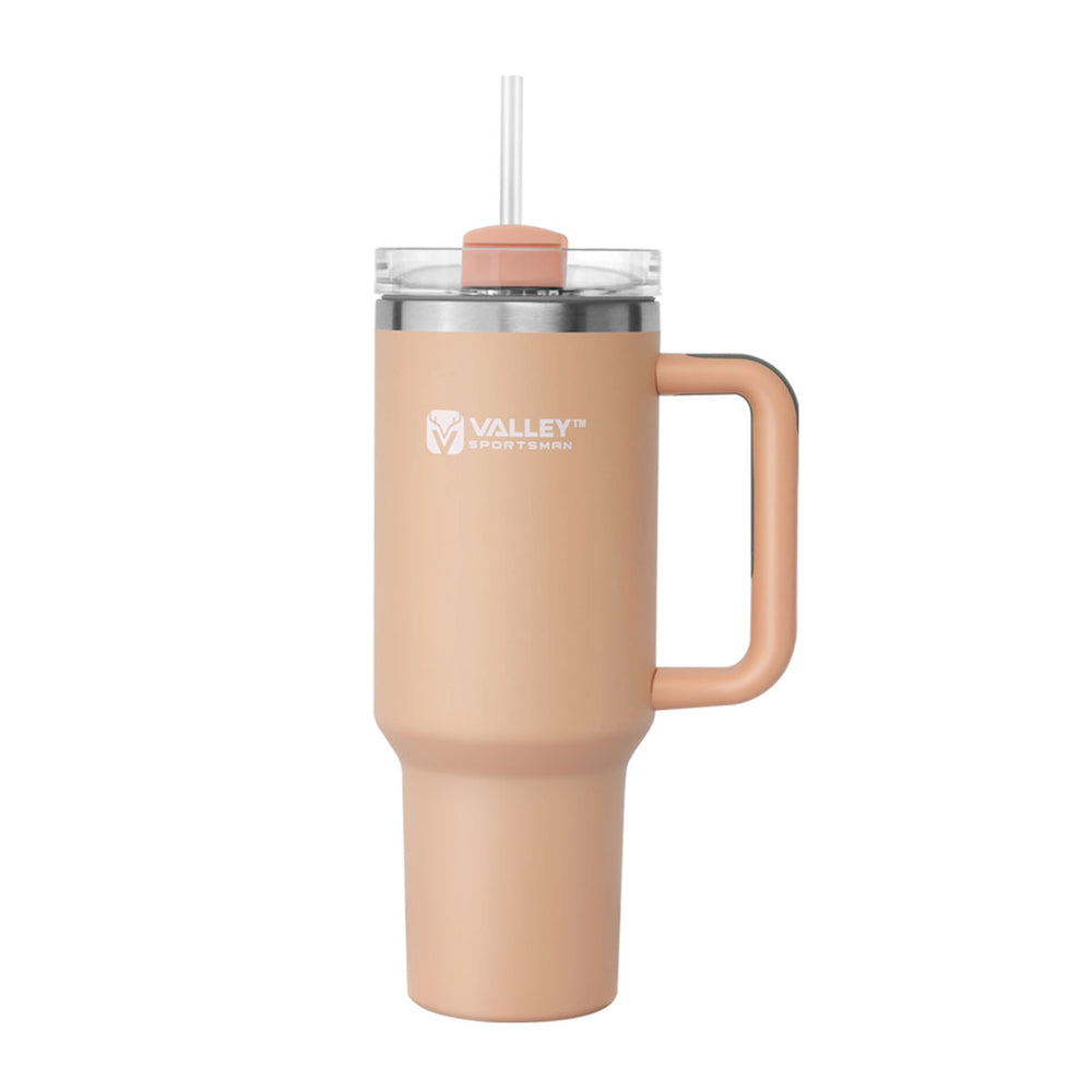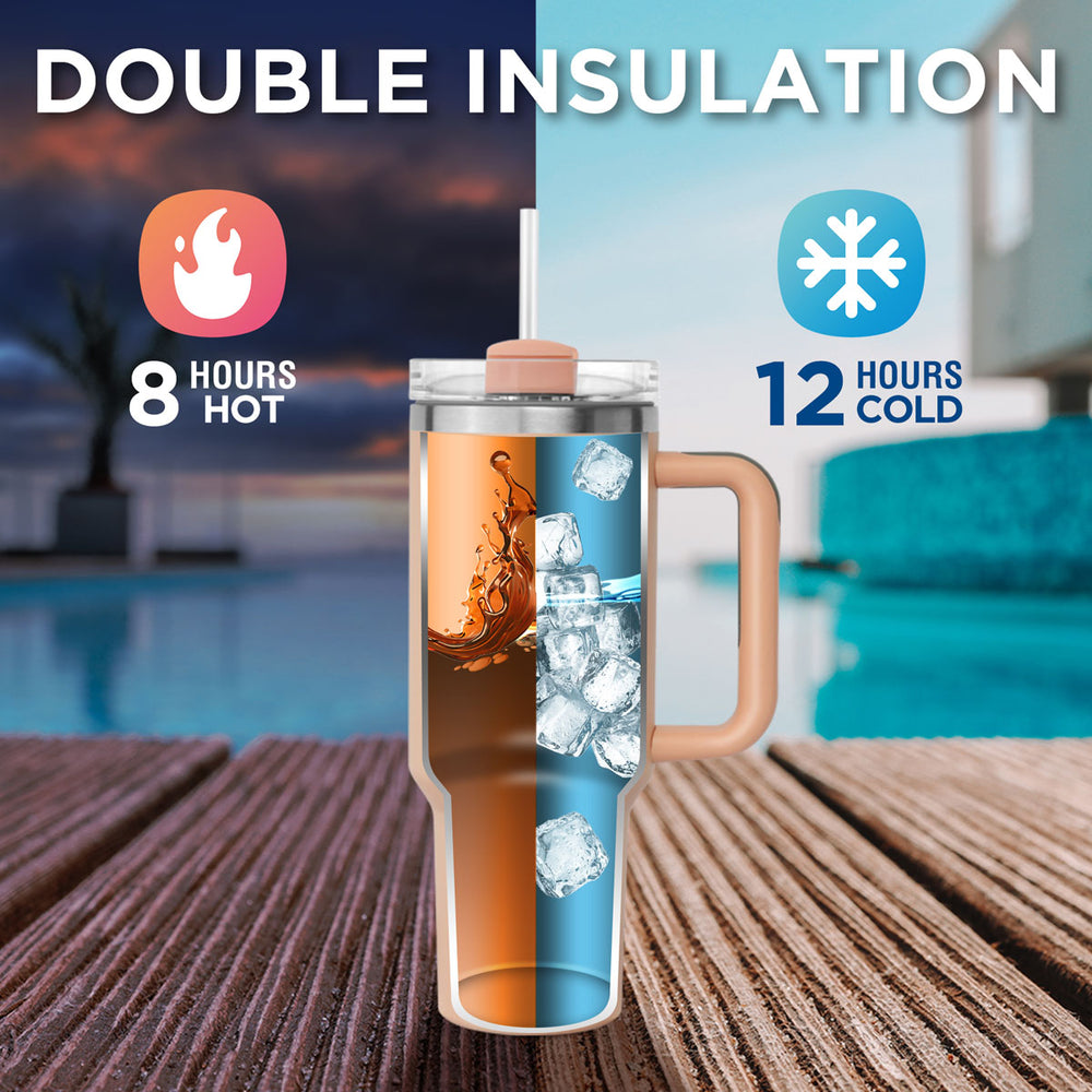 40oz Tumbler with Handle and Straw, Stainless Steel Leakproof Insulated Mug, Beige Rose