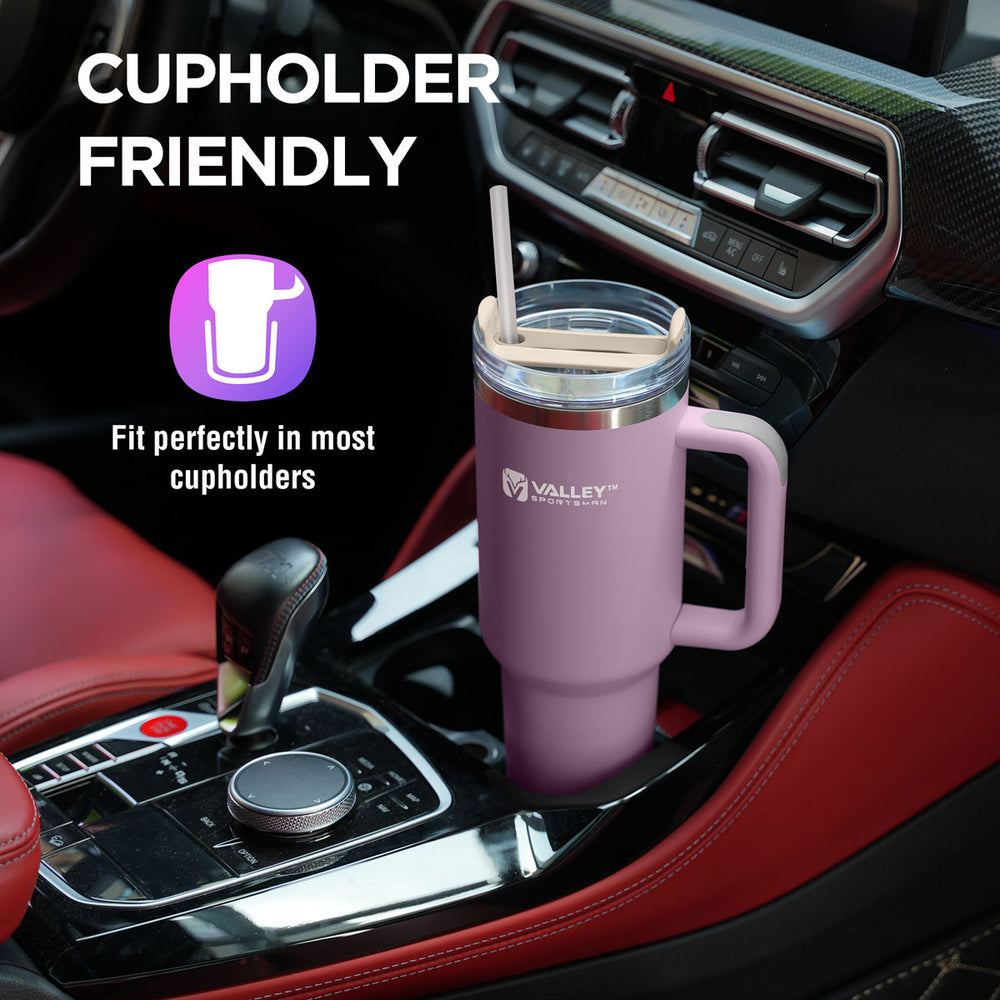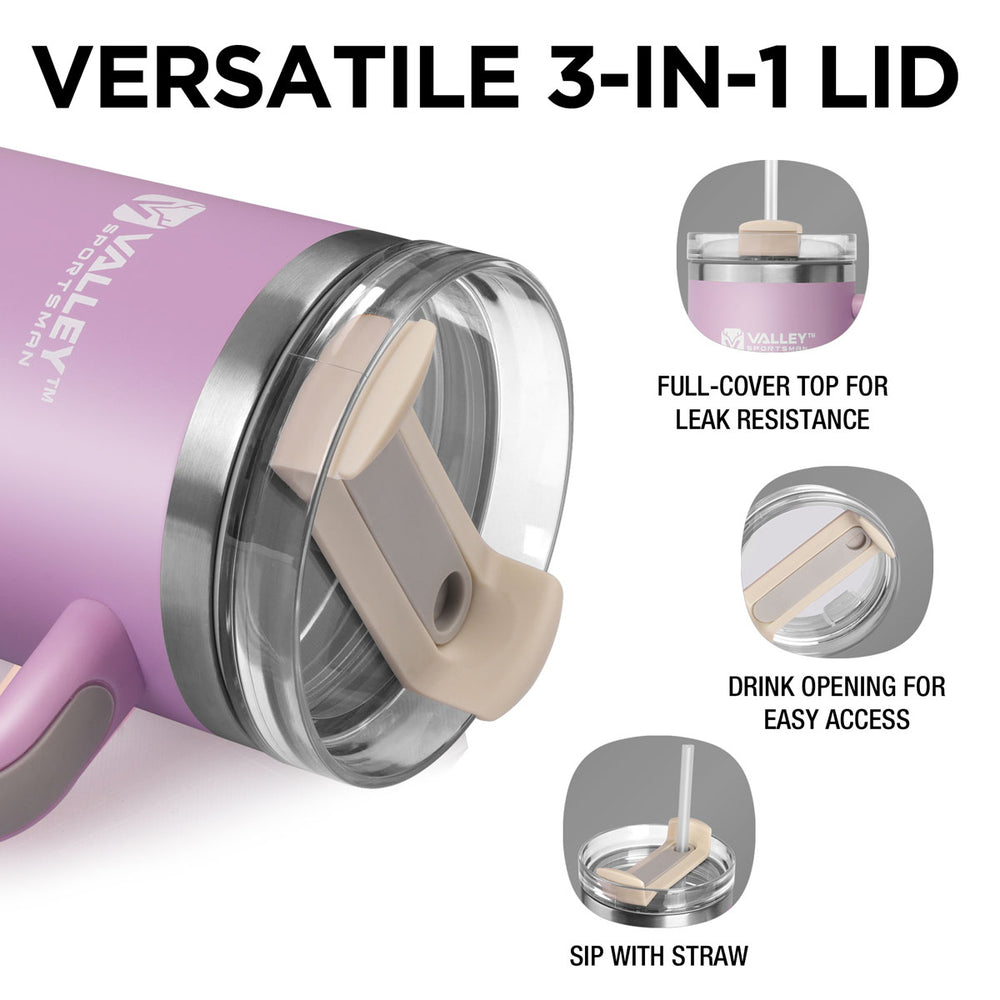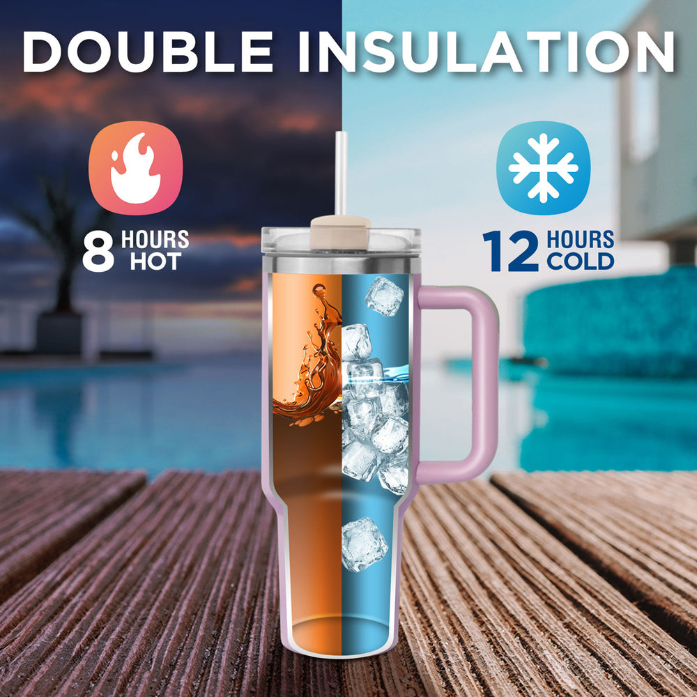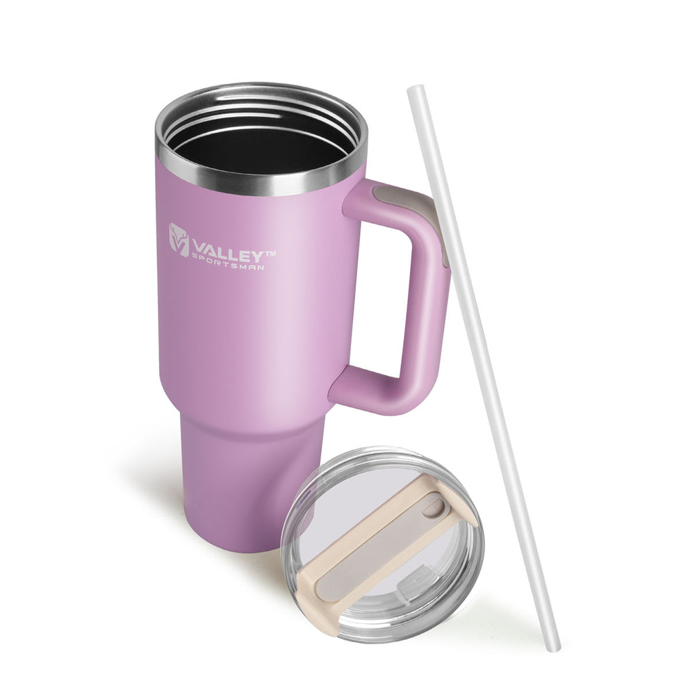 40oz Tumbler with Handle and Straw, Stainless Steel Leakproof Insulated Mug, Light Purple