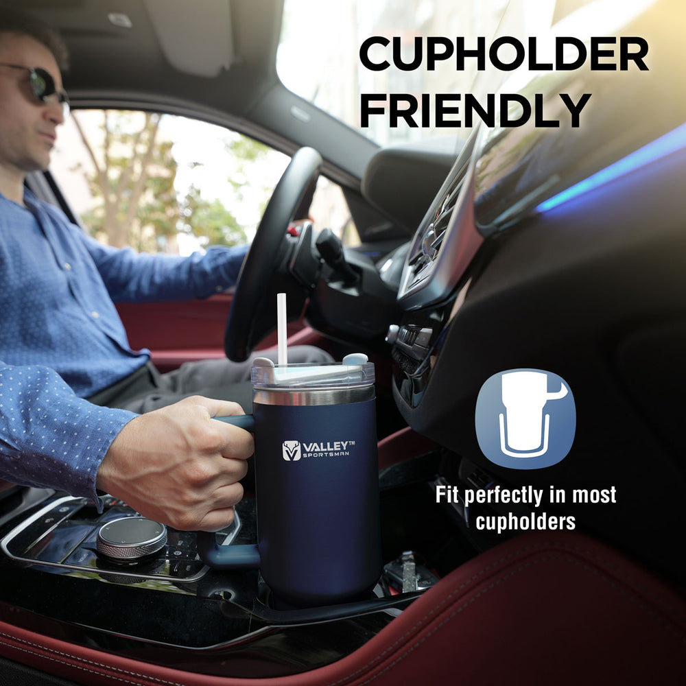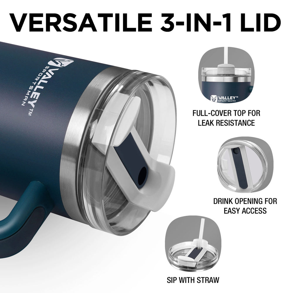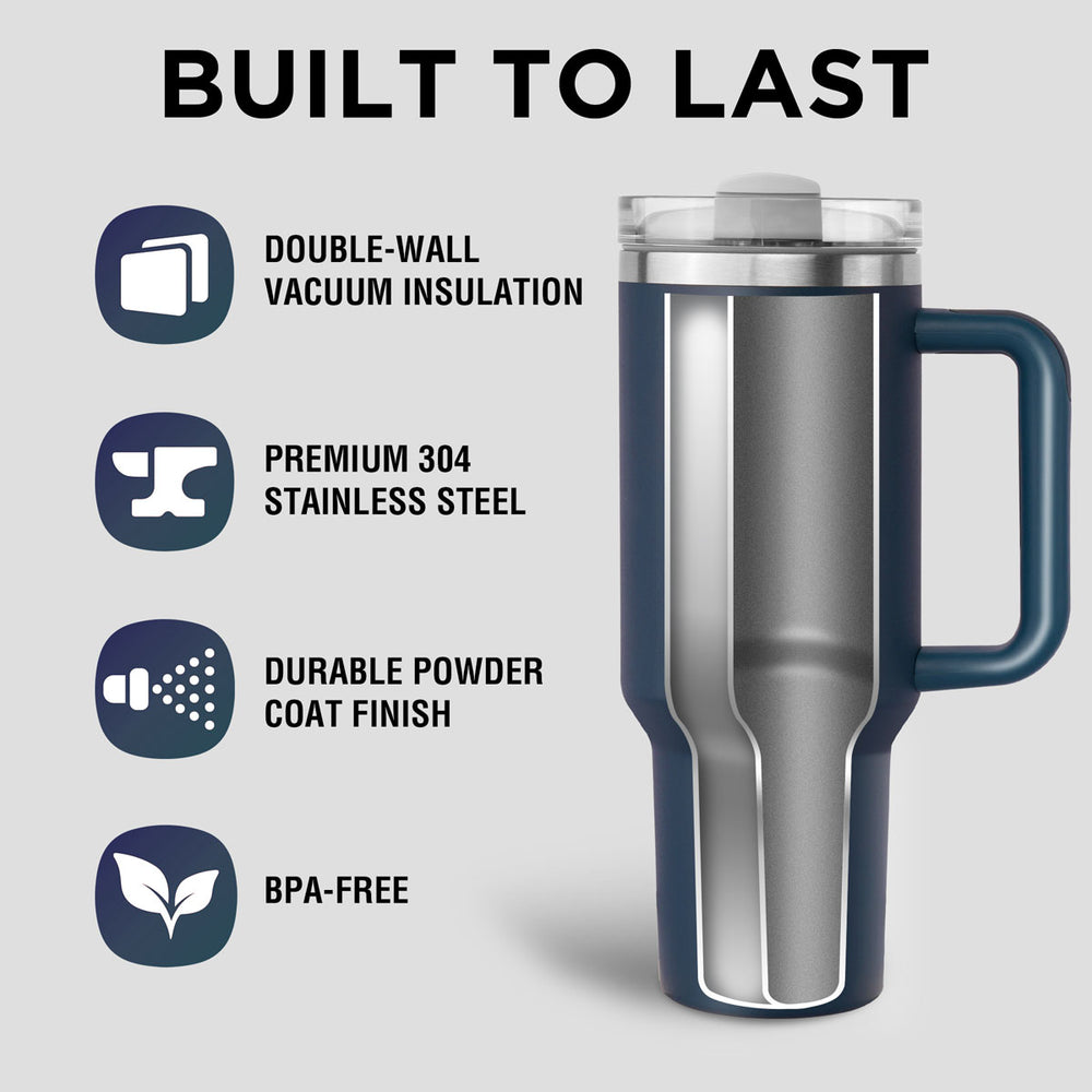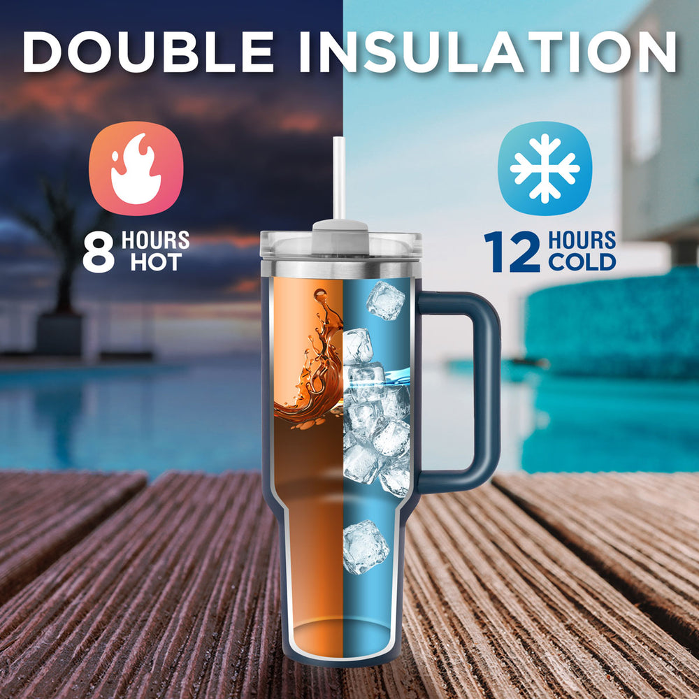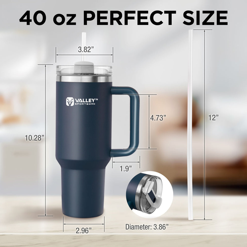 40oz Tumbler with Handle and Straw, Stainless Steel Leakproof Insulated Mug, Ocean Blue