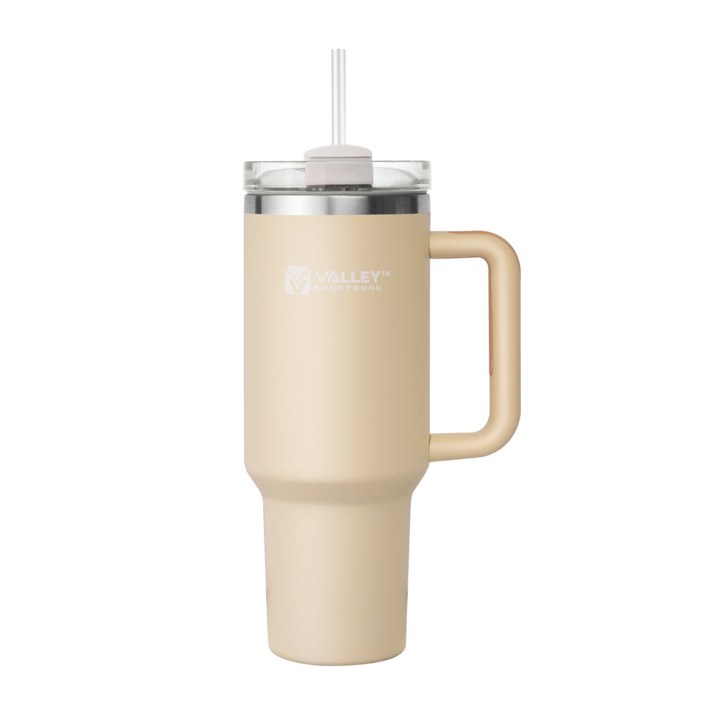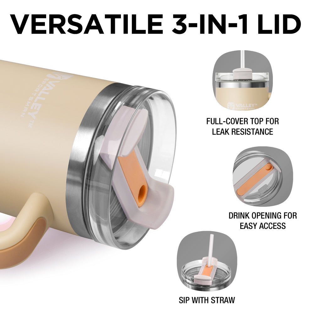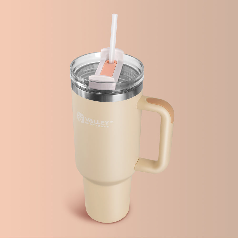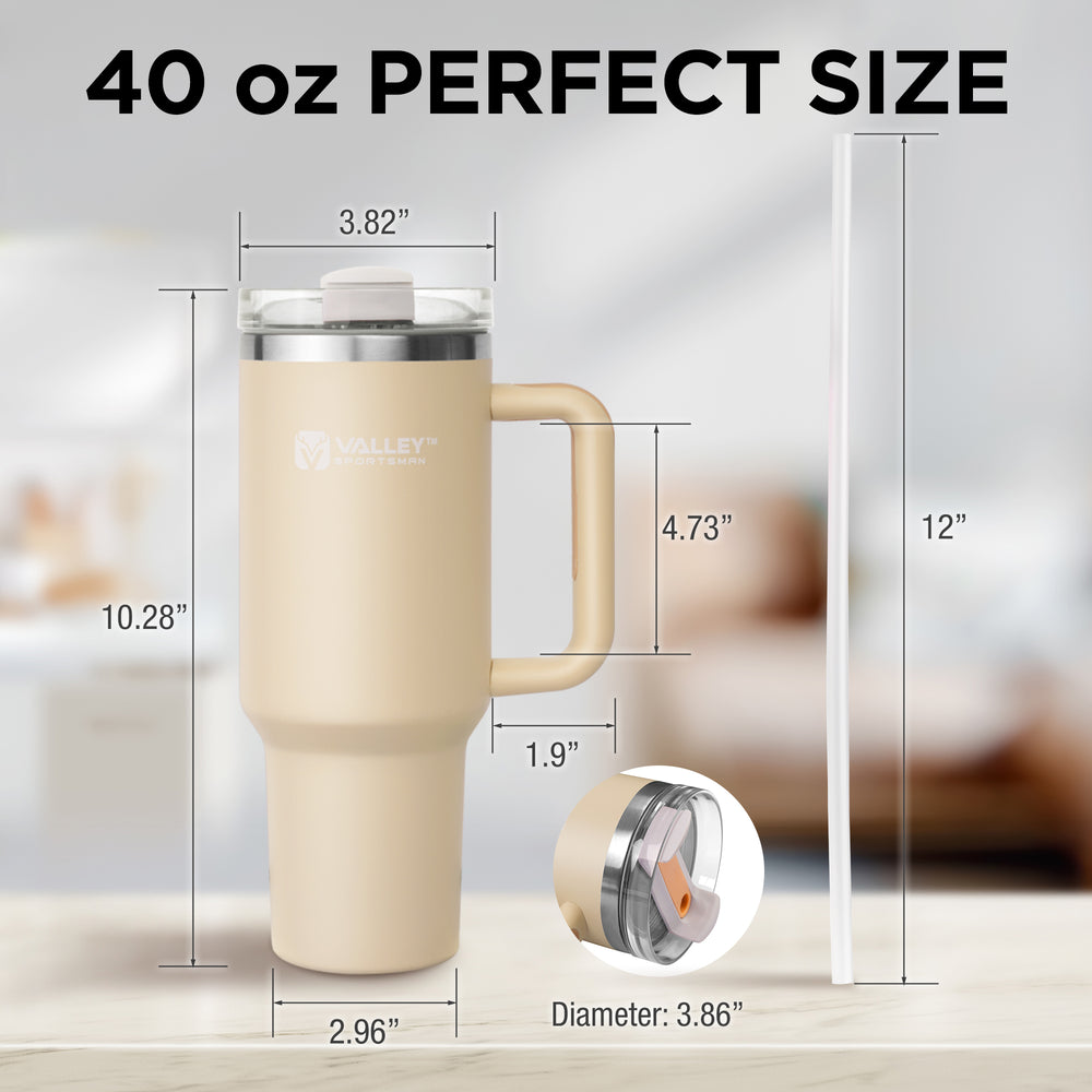 40oz Tumbler with Handle and Straw, Stainless Steel Leakproof Insulated Mug, Rose Quartz