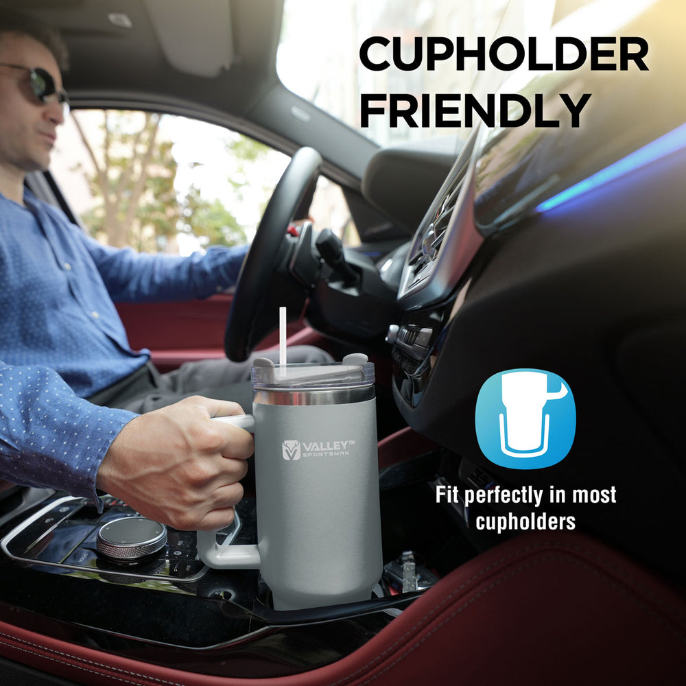 40oz Tumbler with Handle and Straw, Stainless Steel Leakproof Insulated Mug, Sand Beige