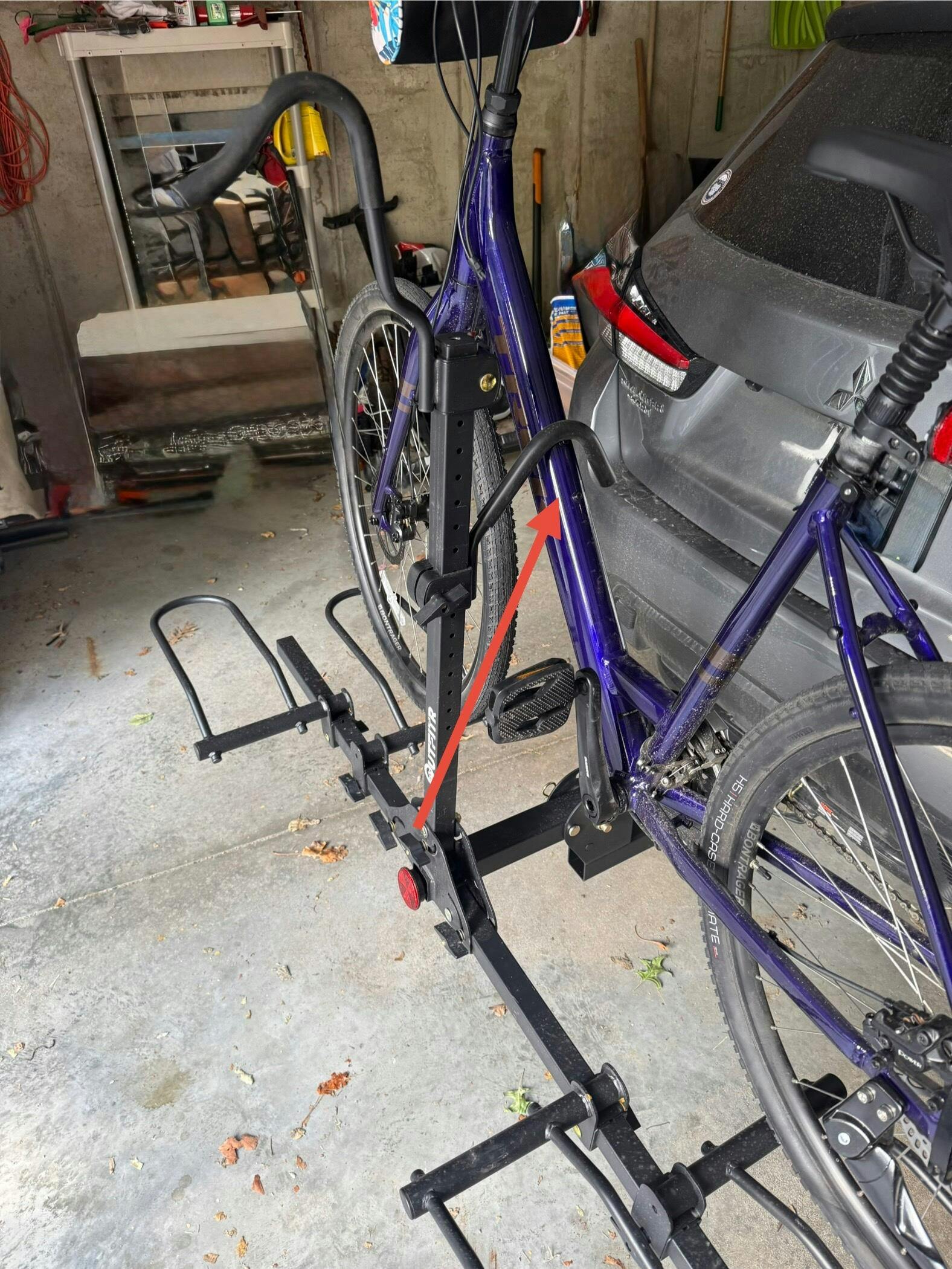 My concern with buying this is whether it would work with my wife’s step-through bike. It works perfectly! So easy to load both bikes and they are rock solid. The rack is strong, well built metal but easy to maneuver and quick to load/unload bikes. Plus I can access my SUV hatch when I carry one bike (outside) or when it’s folded and low profile for driving around town. It’s possible to tilt the rack back with two bikes on it but they don’t recommend it and it’s so quick to pull the inside bike off anyway I don’t worry about it.