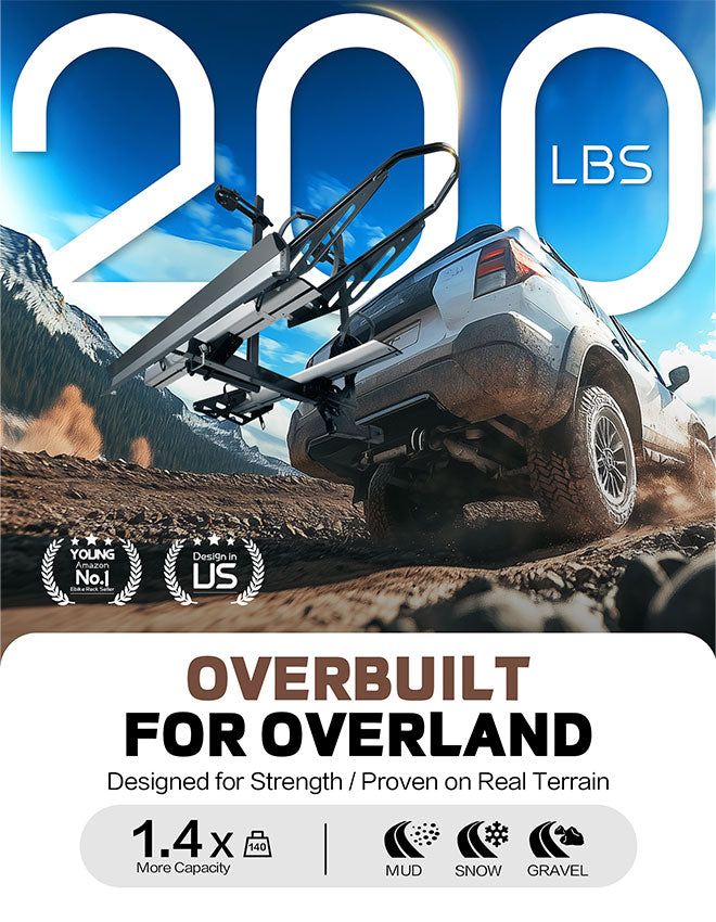 200 LBS Capacity, Up to 50‘’ Wheelbase and 5'' Tire Width, 2'' Hitch