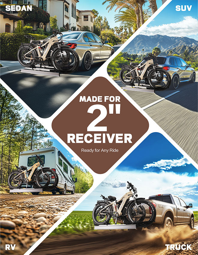 2-Bike Hitch E-Bike Rack with Ramp, Foldable