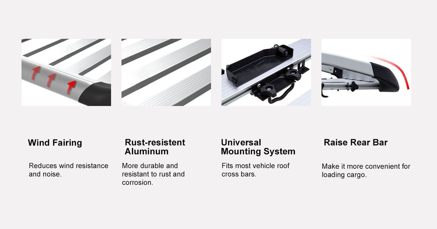 DURABLE AND SECURE: Made from high-quality aluminum, this roof basket is designed to withstand the elements and provide long-term durability. The attachment clamps and locks deter theft and ensure that your cargo stays secure throughout your journey.