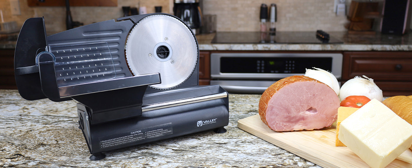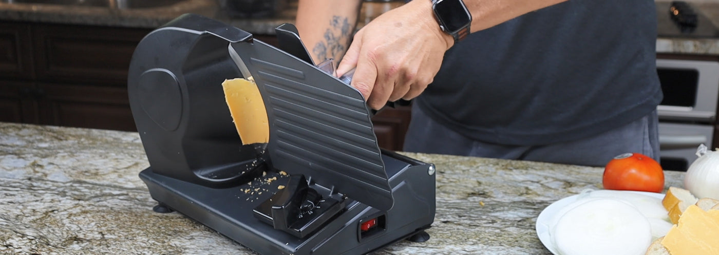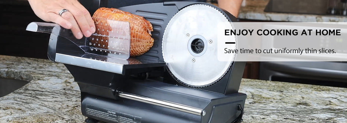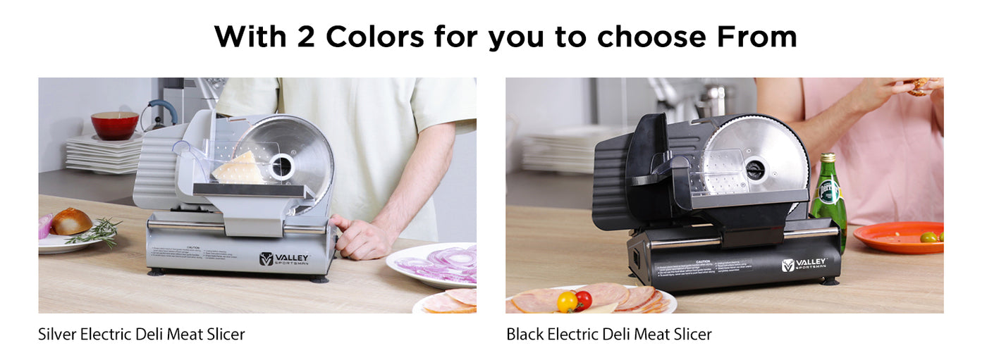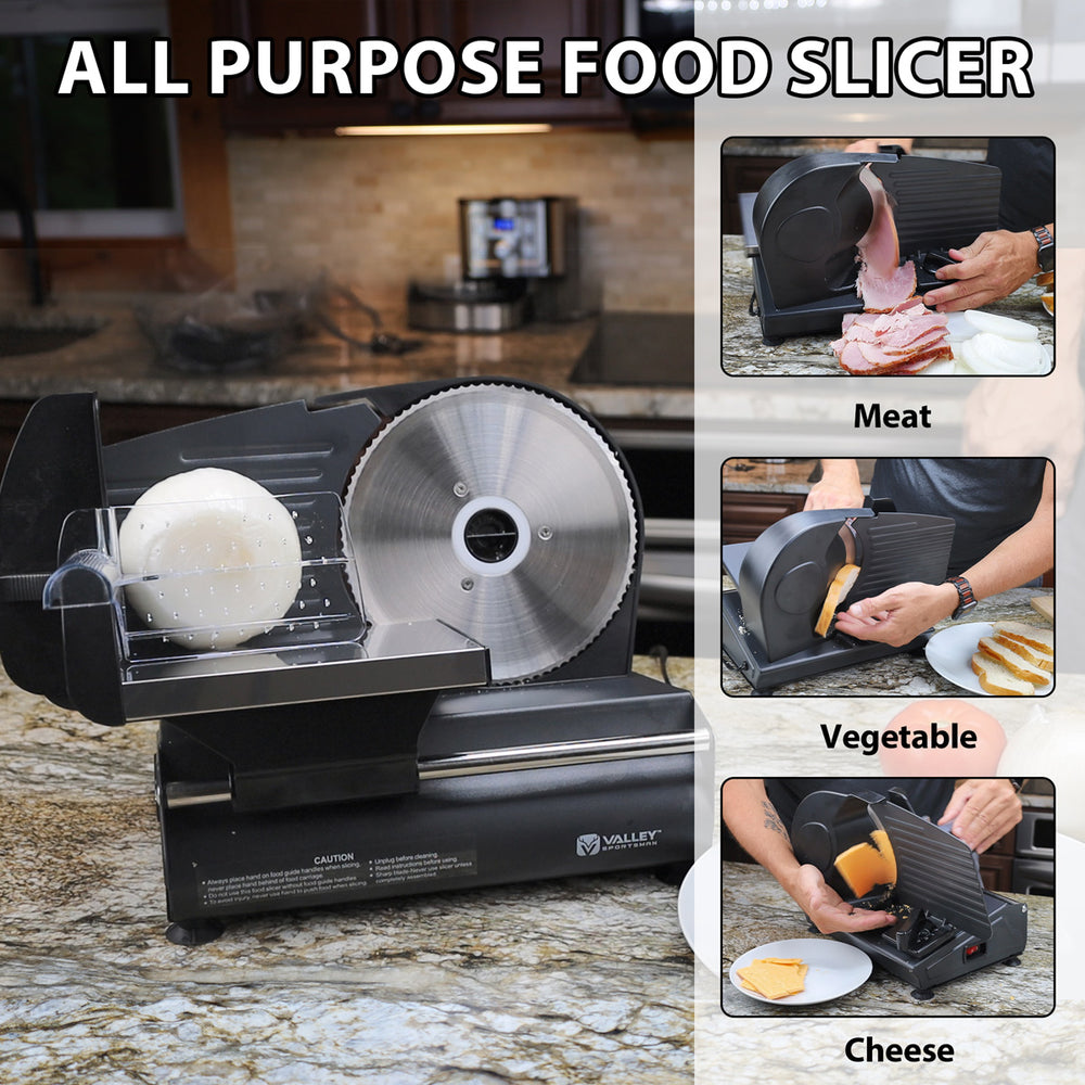 - Versatility: Adjust the slice thickness with a simple dial. The deli meat slicer not only slices lunch meat but can slice vegetables, hard cheeses, and fruits, too, making them more versatile.