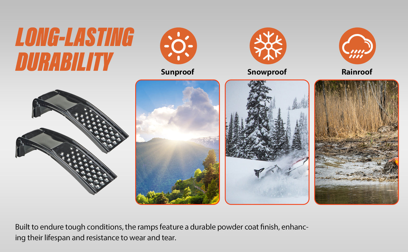 BUILT TO LAST: Made from solid steel and finished with a durable powder coat, these ramps are designed for long-lasting use. The sturdy construction guarantees reliable performance time after time, making them a smart investment for any vehicle owner.